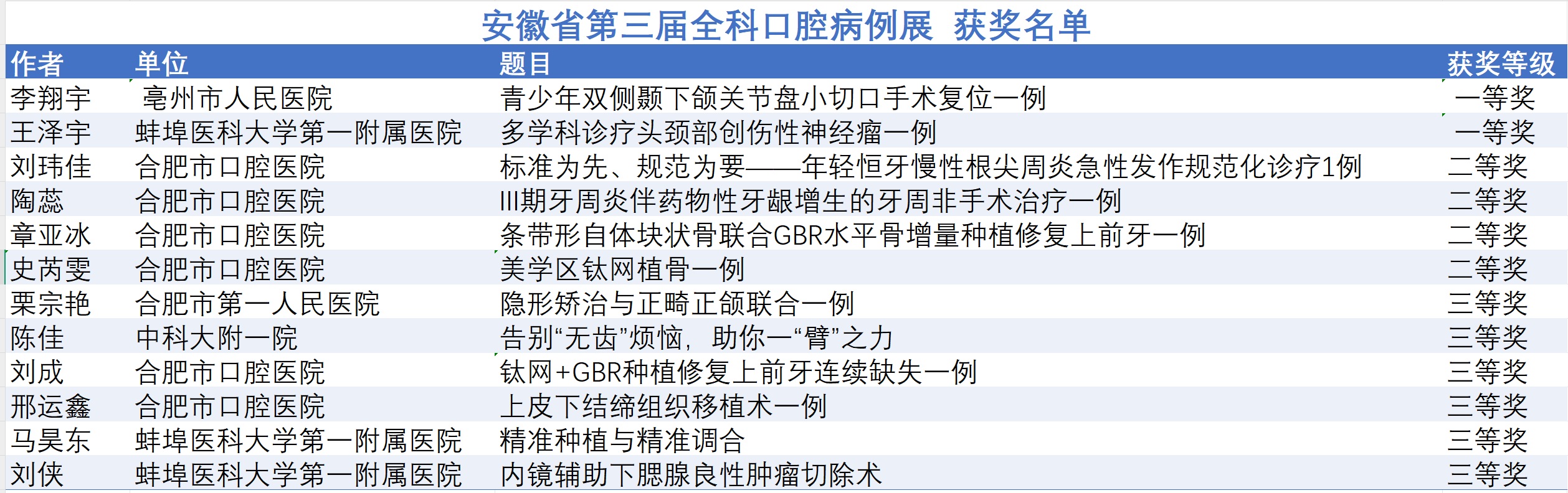 附件:安徽省第三届全科口腔病例展  获奖名单