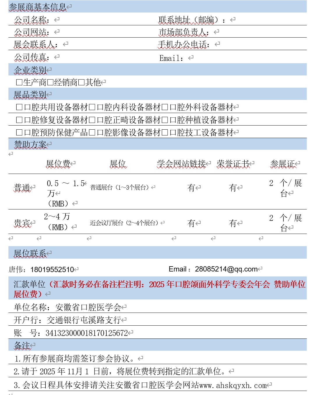 2025年安徽省口腔医学会口腔颌面外科学专业委员会及口腔颌面外科专科联盟学术年会赞助商邀请函